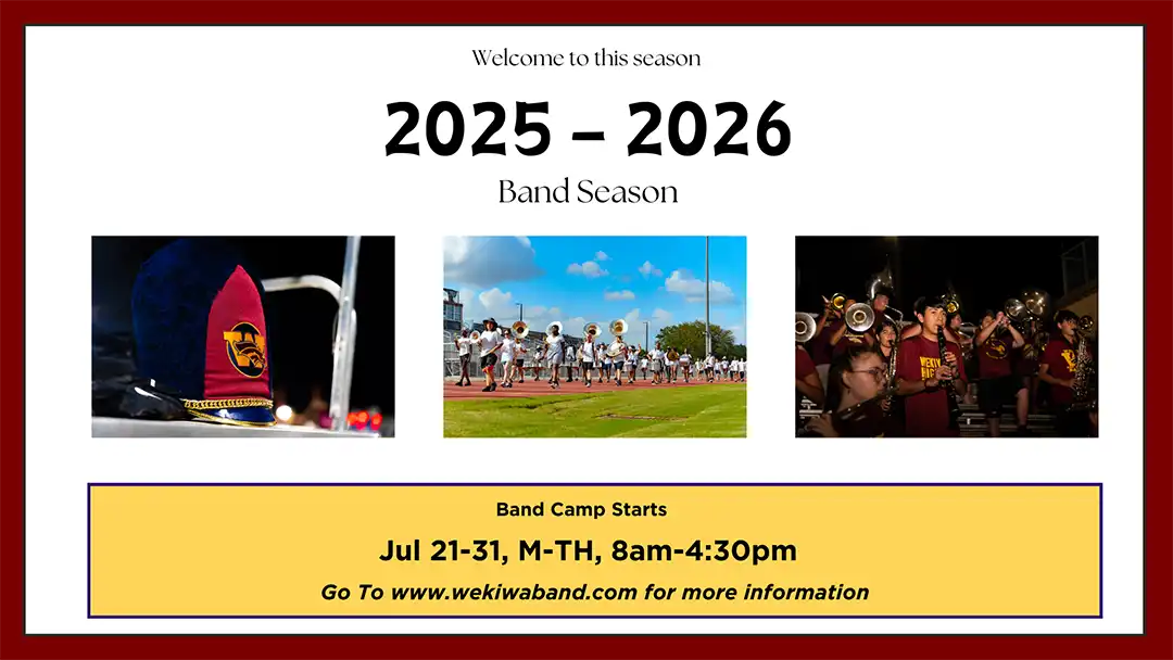 Welcome to the Wekiva High School Band 2025-26 year! We are 7 days away from our Leadership team retreat and 21 days from our annual summer band camp! I want to welcome all students and parents to one of the best programs in Florida. This month marks the first of many months of fun and amazing learning opportunities. I’m excited to see and work with some amazing individuals on the planet. Music for this season has been uploaded to UDB Beam. Please take the time to go through and start practicing your parts. Instructions on how to create your account using the document provided below. Also, do not forget to start physical exercises to get the body accustomed to physical activities. In addition, if you haven’t already done so, please upload your physical and for those of you new to band upload your ECG form too. Be on the lookout for information as the next upcoming weeks quickly approaches. For those of you who have not registered for the New Orleans Sugar Bowl Trip please take the time to register using the document provided below. Payments can be made by using the schoolpay link at the top of the band app. Congratulations to those of you that have been to and are attending summer band camps at various colleges and universities! Also, remember to pay your Fairshare. You may access it from www.wekivaband.com This year band fairshare is $400. Payments for fareshare can be made starting now using schoolpay. I’m looking forward to seeing the Student Leadership Team on Monday, July 7, 2025, from 11:00am-4:30pm and Full band (everyone) on Monday, July 21, 2025 from 8:00am-4:30pm. And lastly, there is a mandatory band parent meeting on Monday, July 21,2025 at 6:30pm inside the band room.